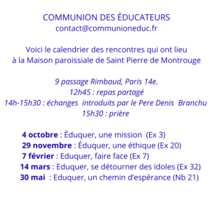 Pour de plus amples informations, prendre contact avec nous -notre adresse mail : contact@communioneduc.fr